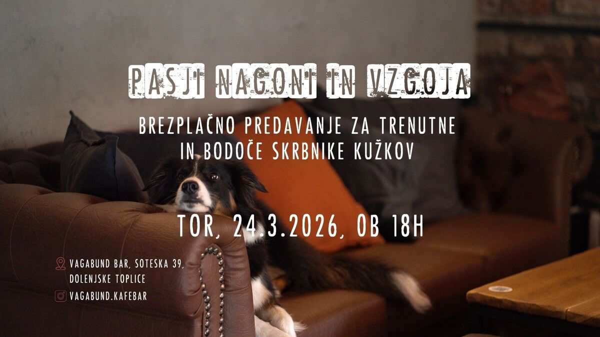 Zakaj se psi vedejo tako, kot se? Kako njihovi nagoni vplivajo na vsakdanje vedenje in zakaj lahko nekatere situacije hitro uidejo izpod nadzora? Na vsa ta vprašanja in še kakšno vam bodo odgovorili na dogodku v kafe baru Vagabund.