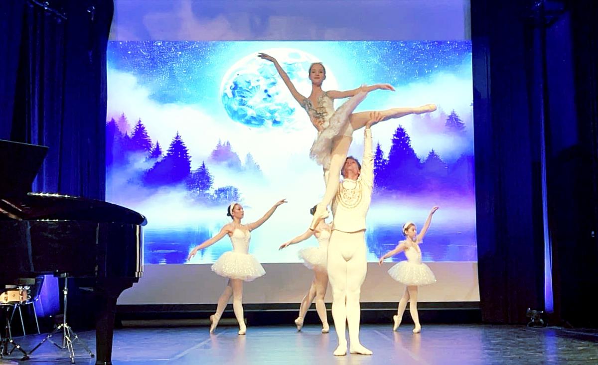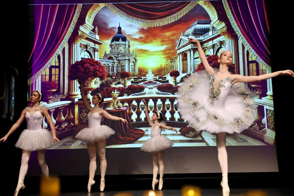 ter 12 izbranih mladih balerin, nagrajenk mednarodnih tekmovanj pod vodstvom gospe Claudie Sovre, vodje slovenskega državnega tekmovanja mladih baletnih plesalcev BALTEK.