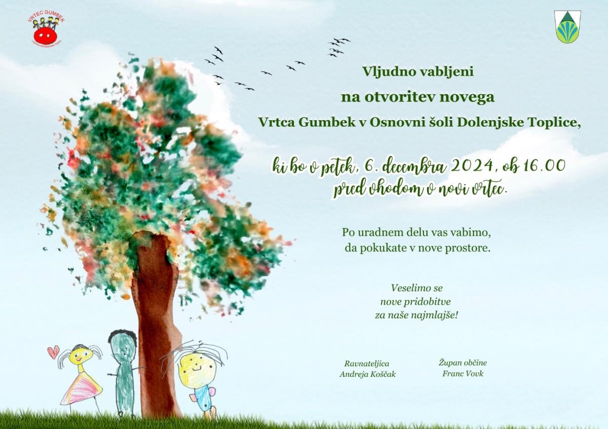 Vabljeni na svečano otvoritev novega vrtca, ki bo v petek, 6. decembra, ob 16. uri pred vhodom v novi vrtec.
