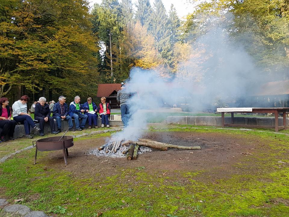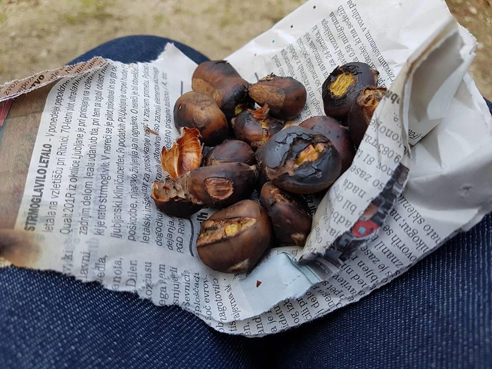 Ob 15. uri popoldne, smo se začeli zbirati na Jasi. Kostanjepeka sta zakurila ogenj, drugi so narezali kostanje. Ko so se ti pekli, smo našli in nabrali štorovke, uživali smo doma spečene dobrote in pokušali mošt od letošnje trgatve. Lupili in jedli smo pečene kostanje, in se pogovarjali. Drago je igral na harmoniko in nas spremljal, ko smo peli slovenske narodne. Tako smo si pričarali prav prijetno popoldne in večer.