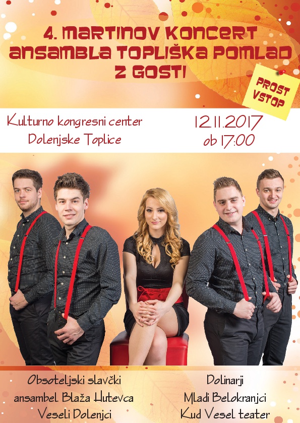 Vabilo na 4. Martinov koncert ansambla Topliška pomlad