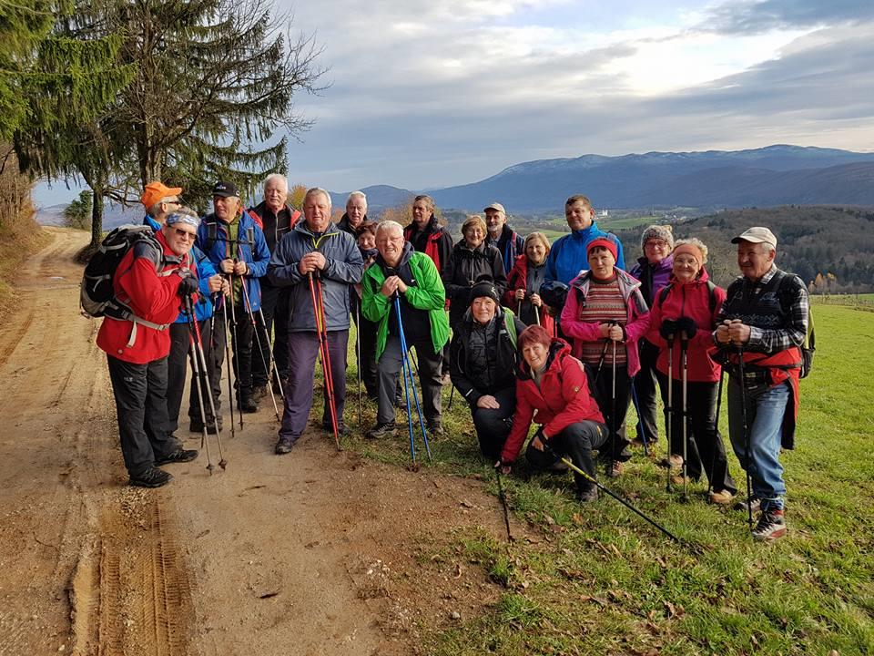 Hodili smo po gozdnih poteh, listje je že skoraj odpadlo in prijetno šumelo pod nogami. Pogledi so uhajali na Lisec posejan z vinogradi, na zasavsko hribovje s Kumom , Lisco, vrhovi so že pobeljeni s snegom…na drugi strani na Kamniško Savinjske Alpe z Ojstrico, ….in uživali smo v njih. Spustili smo se do vasi Sela pri Šumberku, kjer je doma Toni Pekolj, si ogledali trg s cerkvijo Janeza Kersnika in kmalu prišli do »Drvene kafane«, kjer je sledil počitek ob odlični malici v domačem, prijetnem okolju. Povratek je potekal po isti poti, celo sonček nas je obsijal, čudovit dan za pohod smo preživeli v dobri družbi,prelepi naravi z mislijo na čase ko so po teh poteh hodili lastniki obeh gradov….