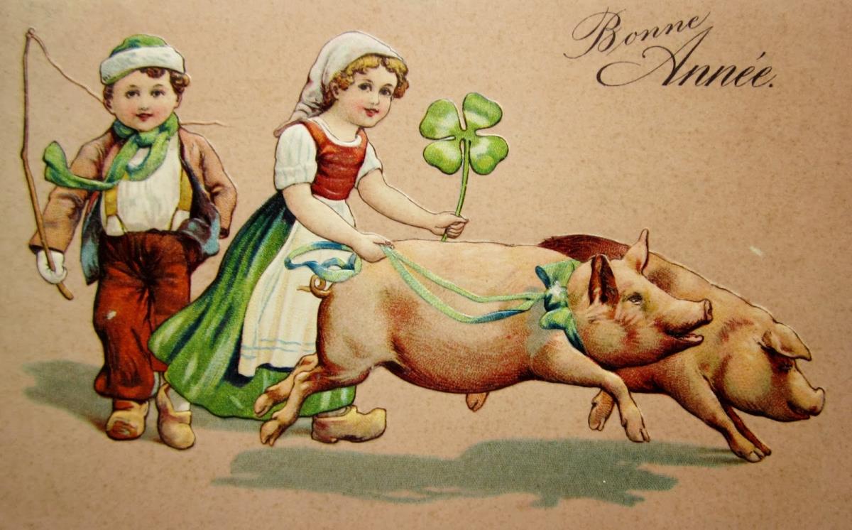 Na novoletnih voščilnicah z motivi simbolov za srečo pa skoraj zagotovo ne manjka štiriperesna deteljica. Ta velja za rastlino, ki odganja zle sile oziroma pred njimi varuje ljudi in živali, hkrati pa tistemu, ki jo ima pri sebi, prinaša srečo in uspeh.