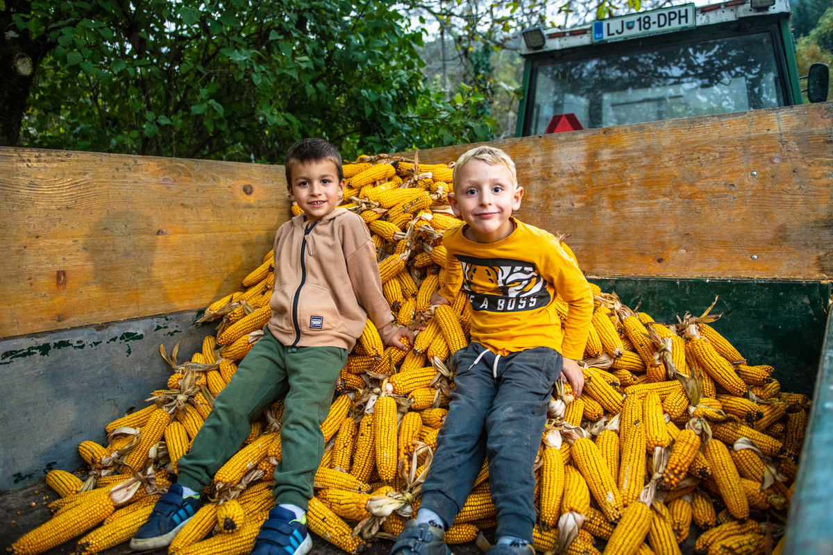 Vse smo začeli že dan prej, ko je bilo potrebno koruzo nabrati. Zahvaljujemo se Bredi Fink in njeni družini (Romanu, Maticu in Patriciji) za koruzo. Breda nam je namreč že lani pomagala s koruzo za ličkanje. Hvala!