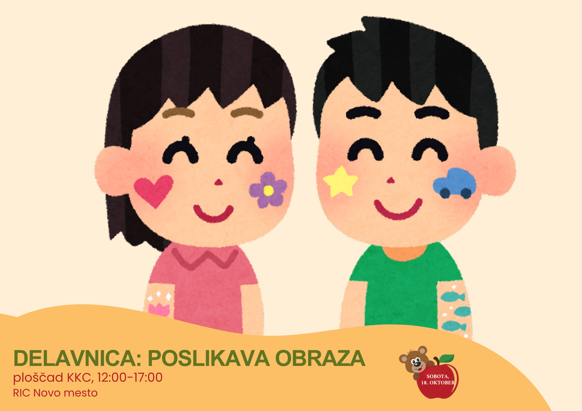 V sklopu Praznika topliškega jabolka ste v soboto, 18. oktobra, vabljeni, da se ustavite tudi pri stojnici Razvojnega centra Novo mesto, kjer bodo izvedli delavnico poslikave obraza.