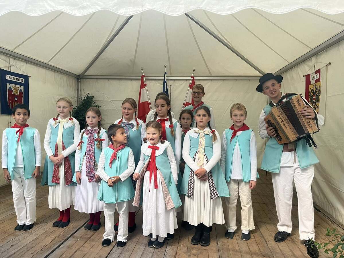 Otroška folklorna skupina Društva Kočevarjev-staroselcev iz Občic je oktobra gostovala na Dunaju v hiši Haus der Heimat. Na povabilo zveze Verband der Deutschen altösterreichischen Landsmannschaften v Avstriji (VLÖ) smo nastopili na letnem srečanju. Dogodka sta je udeležila tudi avstrijski kancler dr. Christian Stocker in Karl von Habsburg.
