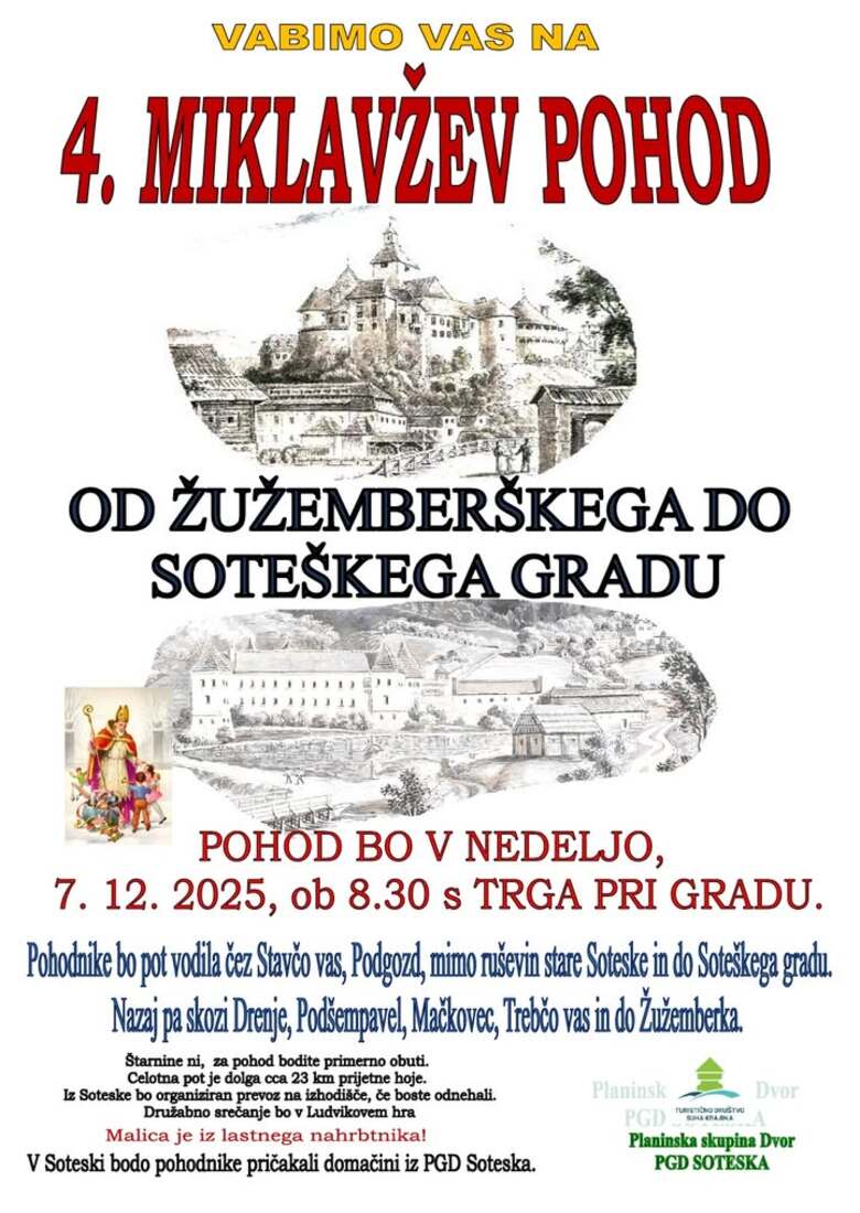 Vabimo vas na 4. MIKLAVŽEV POHOD od Žužemberškega do Soteškega gradu!