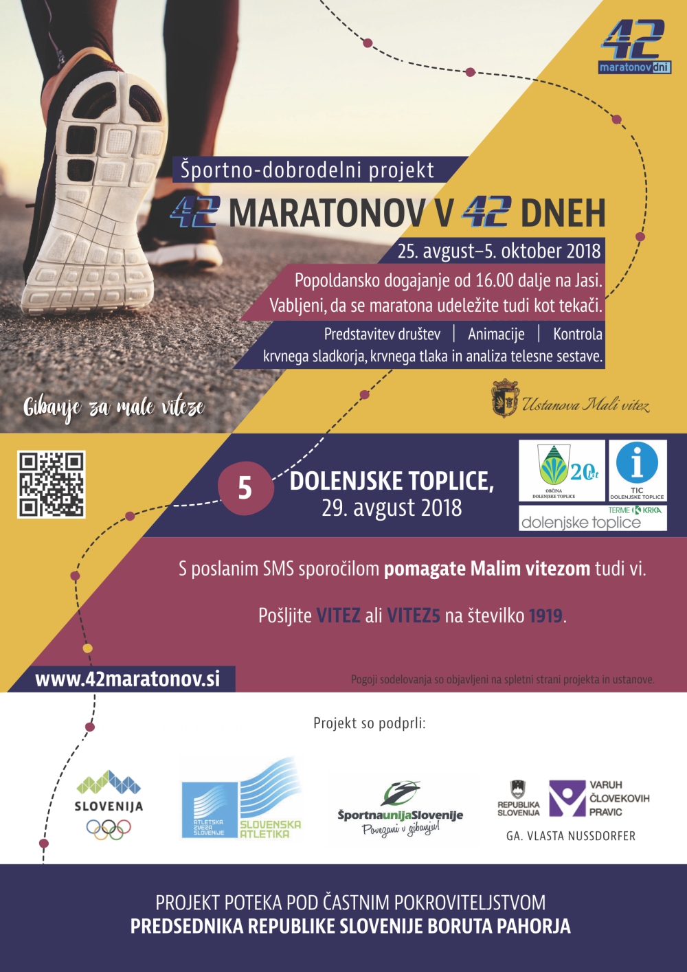 Projekt je podprla tudi Občina Dolenjske Toplice. Bogomir Dolenc bo maraton tekel v sredo, 29. avgusta 2018, na jasi v Dolenjskih Toplicah.