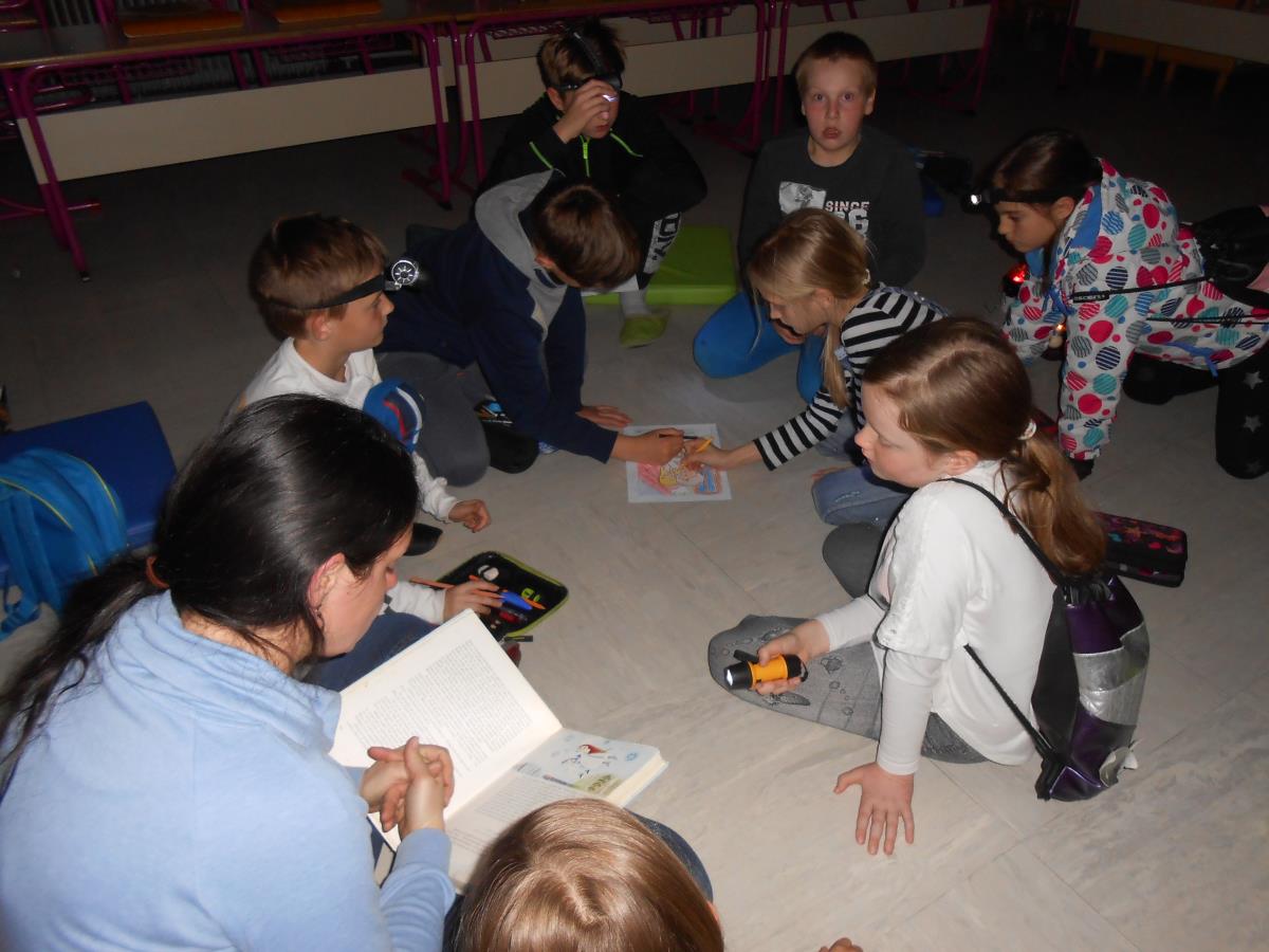 Petdeset prijavljenih učencev OŠ Dolenjske Toplice je petkov večer preživelo ob poslušanju ene od najlepših Andersenovih pravljic – Snežne kraljice in različnih dejavnostih ob in po branju. Razdeljeni so bili v sedem skupin, tako kot ima Snežna kraljica sedem zgodb. Skupine so se menjavale, saj so učenci hodili od učitelja do učitelja in pri vsakem poslušali eno zgodbo iz pravljice. Vsaka skupina je na koncu sestavila svojo knjigo, povzetek pravljice Snežna kraljica.