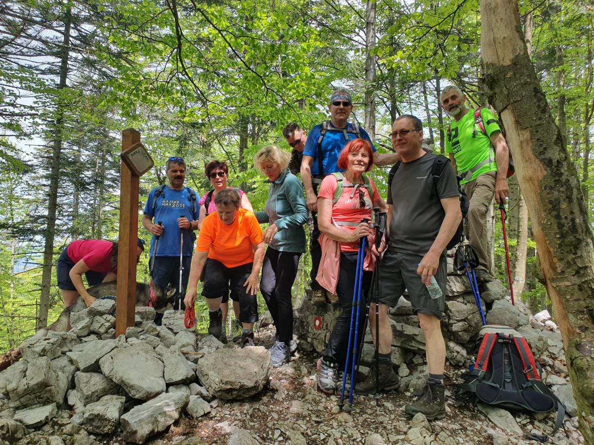 Sestopili smo v dolino za Škriljem in se po gozdnih vlakah in stečinah povzpeli na vrh Mirne gore ter se spustili do planinskega doma. Pot je ena izmed neštetih, ki vodijo na razgledni tisočak, gotovo pa ena izmed zahtevnejših in mi smo jo zmogli, pri koči je sledilo uživanje na sončku ob odlični gostinski ponudbi Doma na Mirni gori . Pogled na prelepo cvetje ob koči je pravi balzam za dušo in Jožica Šavor to zagotovo zna. Predali smo se soncu in klepetu in skoraj pozabili, da je popoldanska vremenska napoved obetala plohe in veter, Temni oblaki so se že zbirali nad domom, ko smo veselo, poskakovali v dolino v smeri Vrčic., vsi navdušeni nad čudovitim pohodom. V dolino je krajša pot, a nalivu s točo nismo ušli, Nekateri pod pelerinami, drugi pod dežniki smo premočeni prišli do cerkve v Brezovici. Marsikdo še ni doživel kaj podobnega in zagotovo bo ta, dan mladosti za vedno ostal med prijetnejšimi spomini.