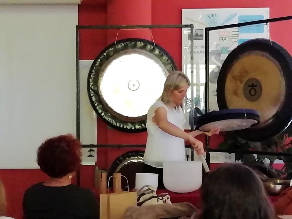 Izvajalka delavnice je Irena Zupančič, ki je usposobljena za igranje na gonge in tibetanske posode.