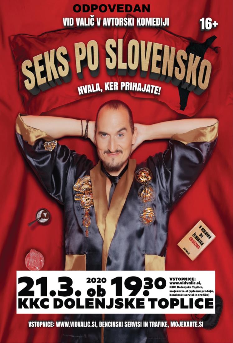 Po objavi določbe Sveta za nacionalno varnost, 9.3.2020 ob 16.00, Vid Valič do nadaljnjega ne bo izvajal avtorske komedije SEKS PO SLOVENSKO.