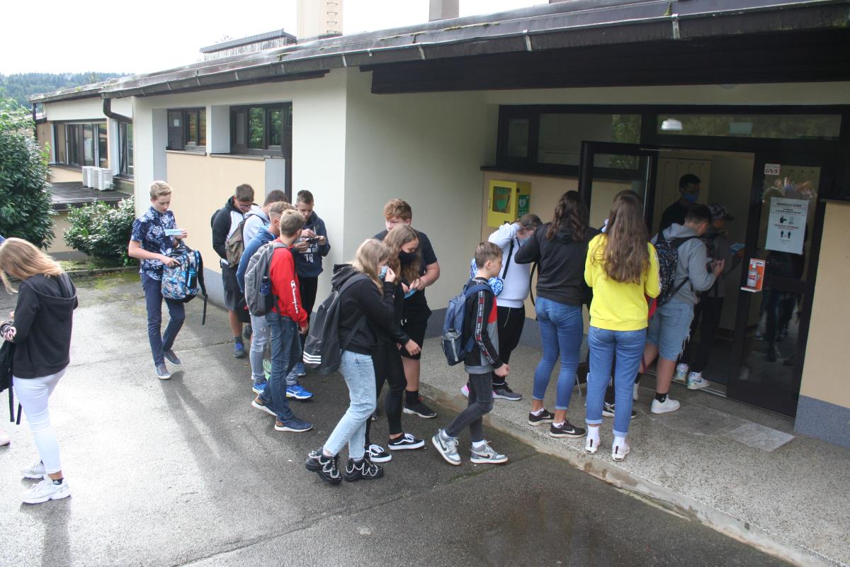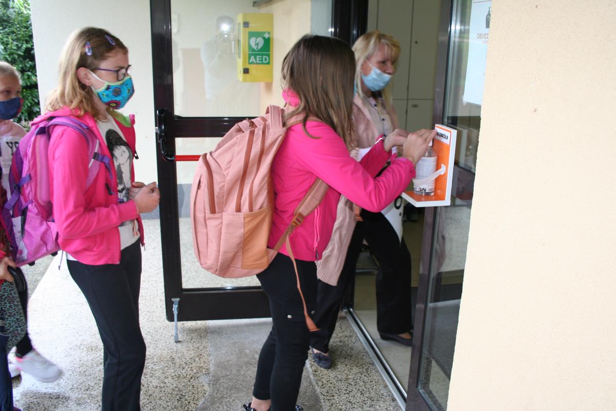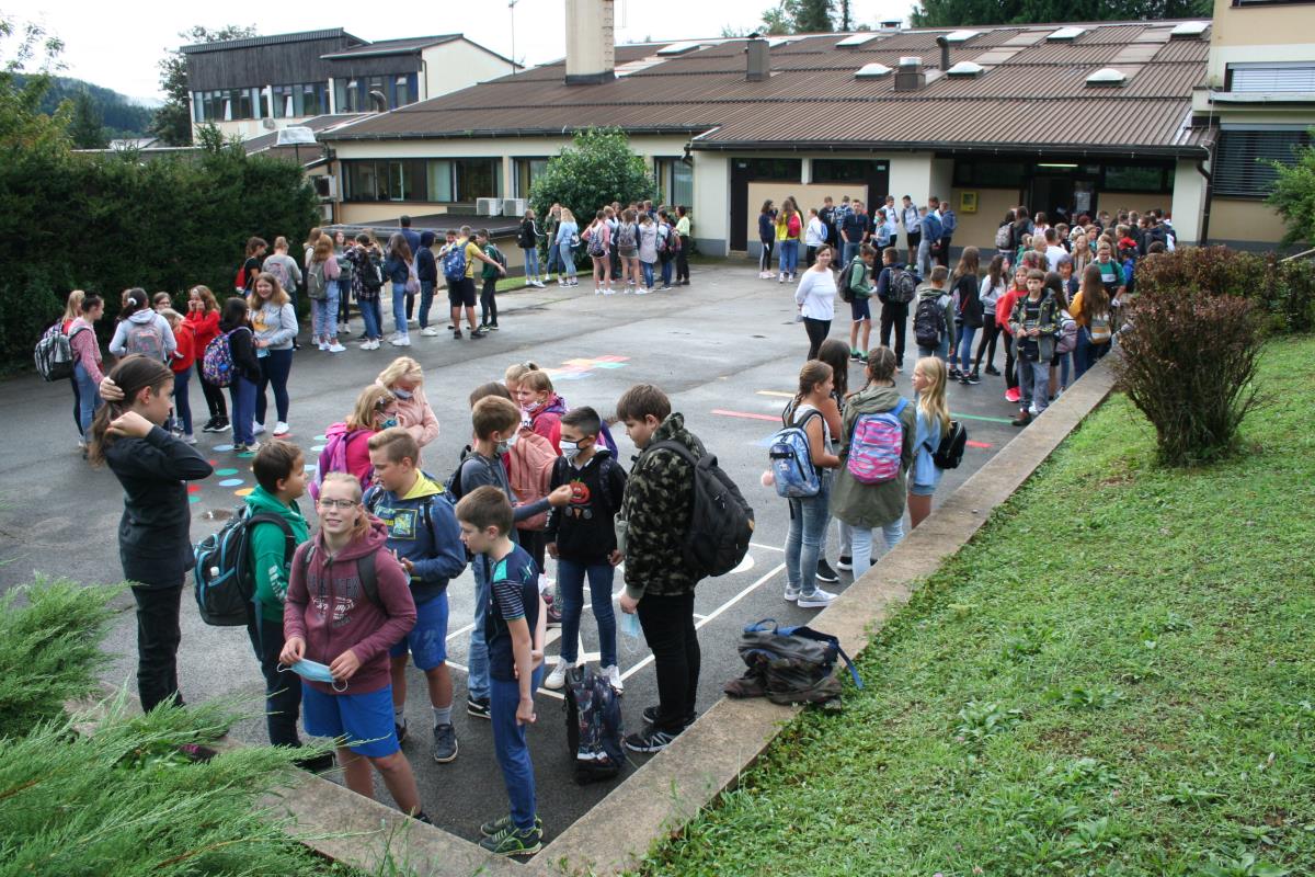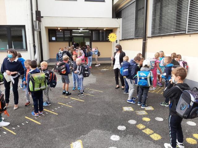 V torek, 1. 9. 2020, smo učenci še vsi zaspani ob 8.00 začeli prihajati pred šolo, kjer so nas pričakali razredniki. Razporedili smo se po skupinah glede na oddelek in prejeli prva navodila svojih razrednikov. Po dolgem času smo se s prijatelji lahko še malo podružili. V garderobo je vstopil vsak razred posebej, pred vhodom pa si je vsak učenec razkužil roke in nadel masko.