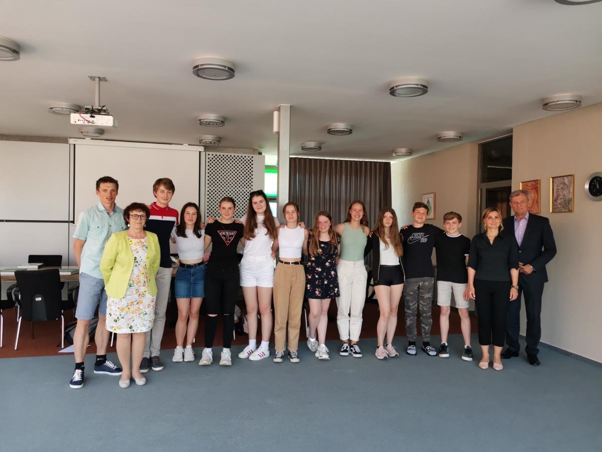 Po zadnjem skupnem razrednem fotografiranju smo učenci, vpisani v zlato knjigo, ravnateljica ter oba razrednika, odšli na obisk h gospodu županu Franciju Vovku. Povedal nam je nekaj o svojih srednješolskih izkušnjah in nas vprašal, kje bomo nadaljevali naše šolanje. Pogovarjali smo se tudi o politiki in poklicih. Župan nam je podelil knjigo z naslovom Dolenjske Toplice v odsevu časa. Po sproščenem in prijetnem druženju smo na koncu skupaj odšli še na pijačo.