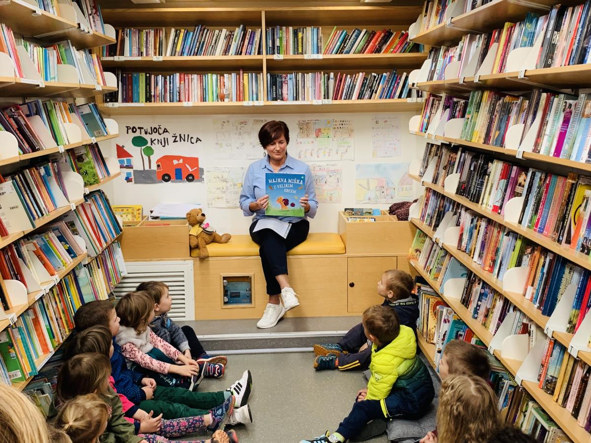 v petek, 7. 10. 2022, se je pred vrtcem in šolo ustavil bibliobus. Otroci so že od daleč opazili zanimiv velik avtobus. Po poslikavi njegove zunanjosti so hitro ugotovili, kaj se skriva v njem. Odpravili smo se bližje, kjer sta nas pričakala voznik in knjižničarka iz krajevne knjižnice, ki nas je povabila v bibliobus. Otroci so z zanimanjem ogledovali bogato založene police bibliobusa ter se posedli in prisluhnili knjižničarki Zvonki. V družbi medvedka jim je prebrala pravljico Majhna miška z velikim srcem. Otroci so pozorno prisluhnili zgodbi o mali miški Mili, o njenem pogumu in prijateljstvu z medvedom. Za konec smo s skupnimi močmi rešili nekaj vprašanj iz kviza o pravljicah. Druženje s knjižničarko Zvonko je bilo prijetno in je kar prehitro minilo. Bibliobus so si ogledale vse starejše skupine vrtca.