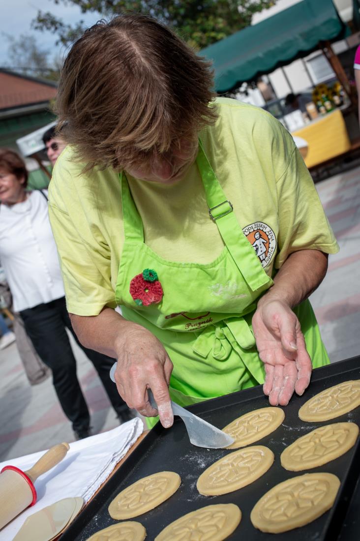Pripravo Topliškega piškotka smo lahko spremljali v živo na prazniku Topliškega jabolka v izvedbi Društva podeželskih žena Dolenjske Toplice.