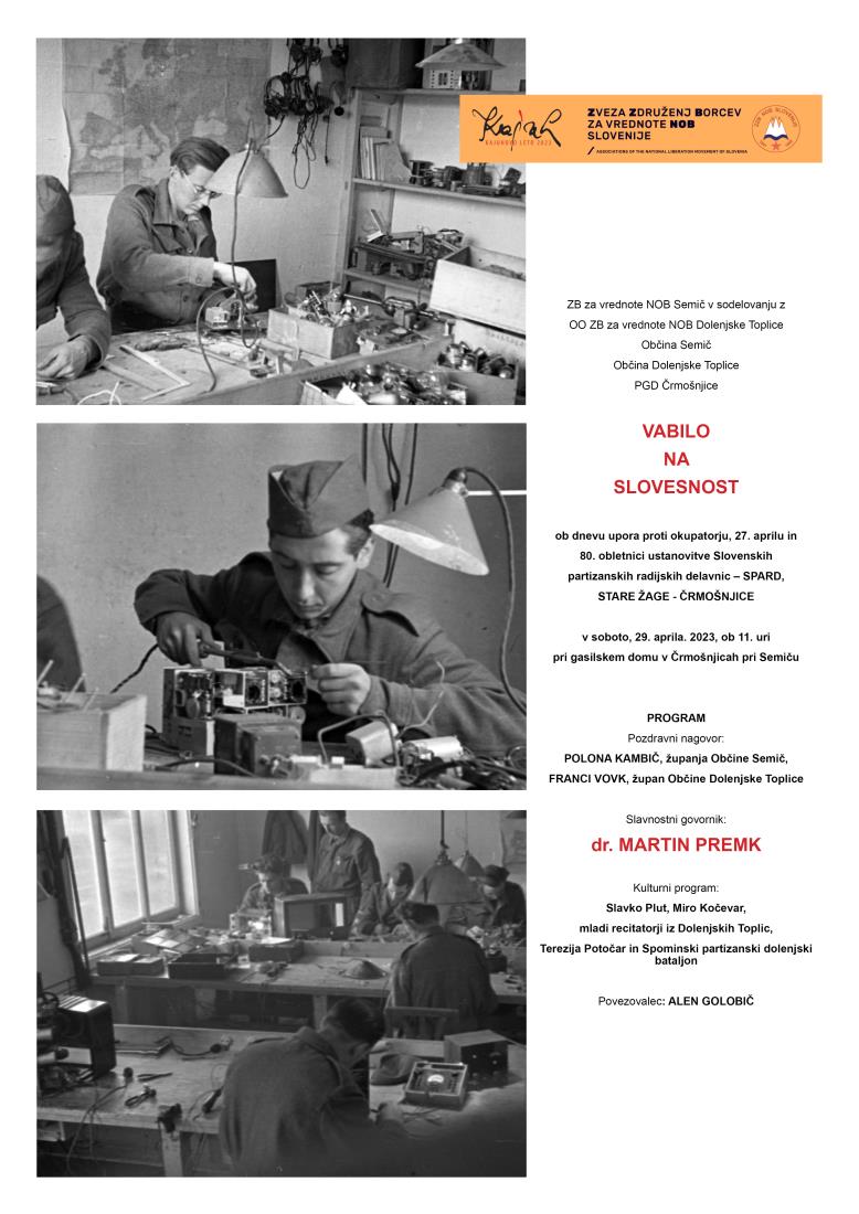 VABILO NA SLOVESNOST ob dnevu upora proti okupatorju in 80. obletnici ustanovitve Slovenskih partizanskih radijskih delavnic