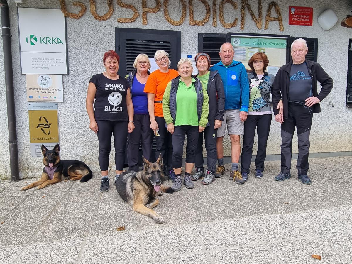 Velikokrat smo izpeljali društveni pohod, ne samo do izvira, do Trdinovega vrha, Miklavža,Javorovice, … Gorjanci z najvišjim Trdinovim vrhom so cilj neštetih pohodnikov, pa tudi vsak med nami se je že sprehodil po teh čudovitih poteh. Manjša skupina se nas je zbrala , a vzdušje je bilo prijetno. Izbrali smo neoznačeno, manj znano pot pri Jugorju. Listje še ni v najlepših barvah jeseni, jurčkov ni bilo videti, pa tudi medveda ne. Šli smo samo do izvira Gospodične, vendar bil je suh, saj že dolgo ni bilo padavin. Dom ni odprt ob torkih. Poklepetali smo ob malici iz nahrbtnika in se odpravili na izhodišče. Udeleženci so imeli razne obveznosti, zato gremo do vrha naslednjič. Za prijetno presenečenje je poskrbel predsednik društva Dušan Kraševec. Pripeljal se iz Trdinovega vrha s kolesom in sledilo je obvezno fotografiranje.