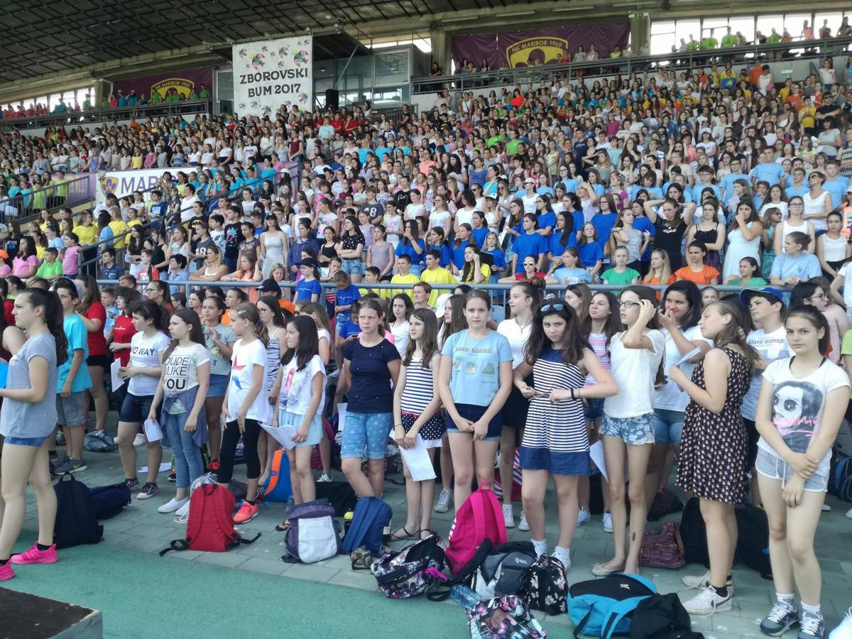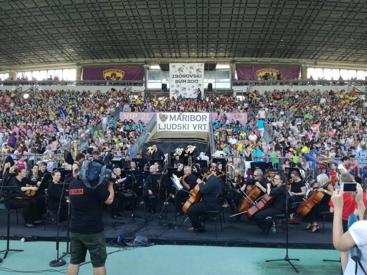 Nato smo se odpravili v mesto, natančneje na Stadion Ljudski vrt Maribor, kjer smo se ob prihodu razdelili po glasovih. Vsak glas se je s svojim spremljevalnim učiteljem odpravil na svoje mesto. Nato smo začeli s hitro vajo, da se privadimo na velikost zbora, prostor in ozvočenje. Sledila je generalka in nato enourni odmor. Dogodek pa si je ogledal tudi predsednik države Borut Pahor, ki je do Maribora prišel kar direktno iz tujine. Na tem glasbenem dogodku so nastopali tudi duo Wildart, orkester UKC Maribor in nekaj opernih solistov. Ta dan si bomo zagotovo vsi vtisnili v spomin, kot enega najlepših. Zagotovo pa je za vse nas bila to še ena nova, velika izkušnja in morda se bo v prihodnosti izkazala tudi kot zelo pomembna. V vsakem primeru pa lahko brez oklevanja zatrdimo, da smo se imeli lepo, fino in na sploh je bil to zagotovo eden izmed najprijetnejših nastopov, ki smo jih letos izvedli.