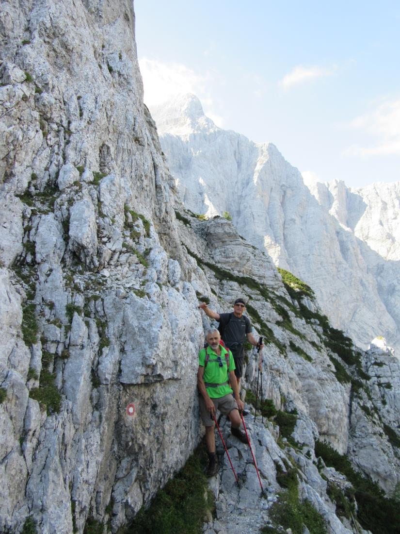 Letos se pripravljam na alpinistično turo v švicarske Alpe kjer bova poskušala skupaj z Branetom Fabjanom v navezi z zakoncema Štremfljem osvojiti zahteven 4356m visoki Dent Blanche. Ker potrebujem višinsko pripravljenost, sem se odpravil za 2 dni na Triglav. Na moje veselje nisem šel sam saj sta se mi pridružila Marjan Pečak in ne boste verjeli 77 letni Tone Markovič, ki nima izkušenj z visokogorjem je pa naš stalni član na pohodih po sredogorju. Pa vseeno sem predlagal pristop na Kredarico preko zelo zahtevne Tominčkove poti. Na moje veselje smo pot prehodili brez težav le ves čas smo držali pesti da bi bil naš očak naslednji dan brez oblakov. Na Kredarici smo bili vsi trije prešerne volje le sam vrh se ni in ni otresel oblaka ki je zakrival pogled nanj. A spanec nam ni bil naklonjen še posebno Tonetu ni bilo najbolje. Sumil sem na višinsko in verjetno sem imel prav sam pa je vso zadevo potrdil ker se je odločil da ne bi bil rad nama v breme tako da je ostal v koči . Pogumno dejanje z njegove strani jaz pa mu dam samo kapo dol saj je dosegel več kot marsikdo. Midva z Marjanom sva tako sama krenila proti vrhu ob možnem vetru vrh je bil že v oblakih a po dobri uri ko sva zagledala Aljažev stolp so se tudi oblaki razpršili in vse je izgledalo da je samo naju čakalo sonce. Kar hitro sva se po fotkanju obrnila v dolino oblaki pa so se vrnili in tisti dan ni nihče več videl vrha našega očaka. A samo z vrnitvijo v dolino Vrat nismo bili zadovoljni temveč smo obiskali še StaniÄŤev dom in to po nezavarovani poti. Seveda smo to videli šele potem ko smo prebrodili vse težave in nas je opomnil na to napis na skali pri domu. Pot čez prag je potekala lepo počasi in previdno a je na najbolj ravnem vseeno Marjana udaril kamen po nosu . Popolnoma sem razumel kolega v dolini ko sta se ozirala v ostenje nad nami in kar nista mogla verjeti da sta tam premagovala goro.