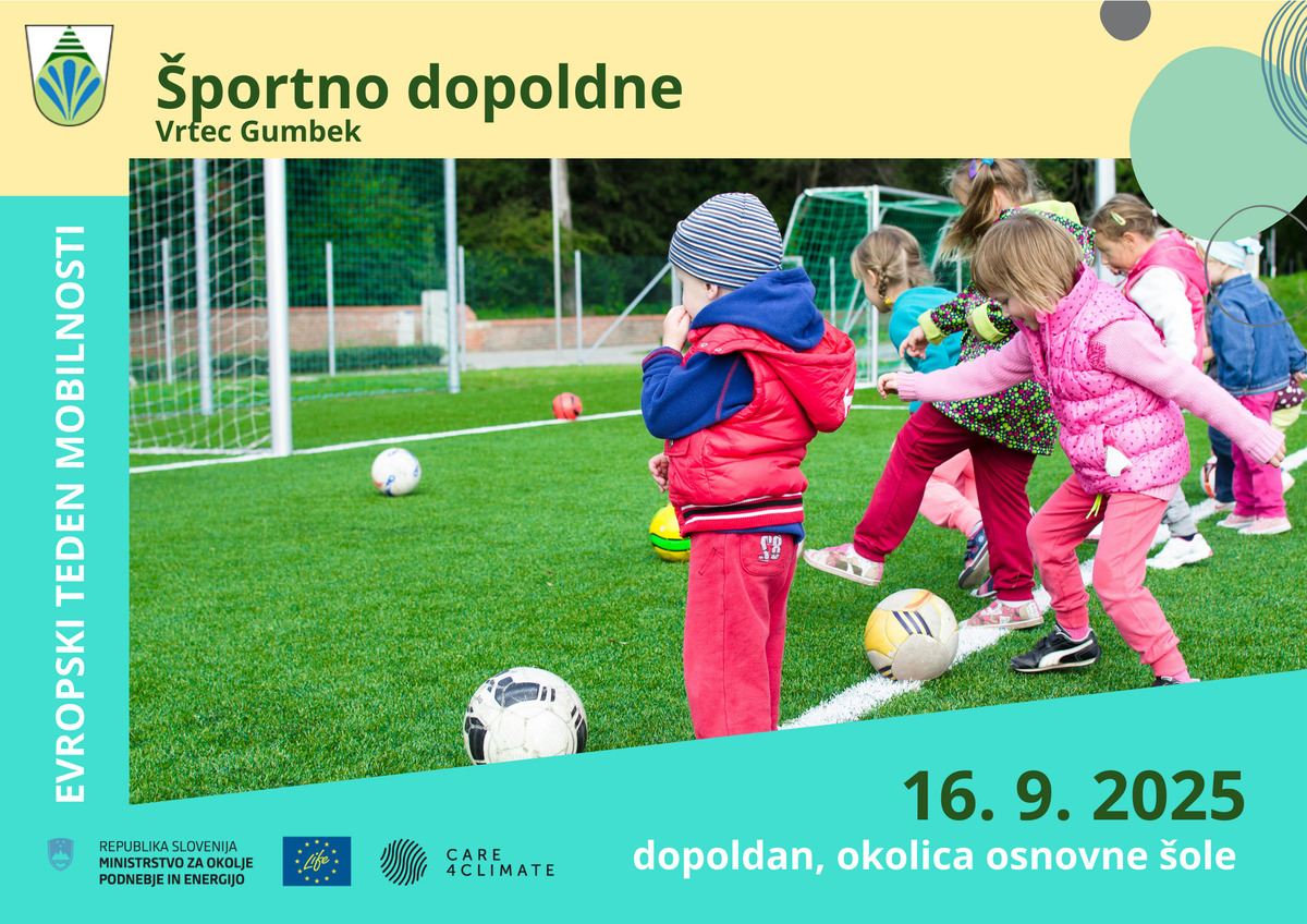 V torek, 16. septembra 2025, bodo v Vrtcu Gumbek obeležili Evropski teden mobilnosti s posebnim športnim dopoldnevom. Dogodek bo potekal v dopoldanskem času v okolici osnovne šole in bo namenjen spodbujanju gibanja, zdravega načina življenja ter ozaveščanju o trajnostni mobilnosti pri najmlajših.