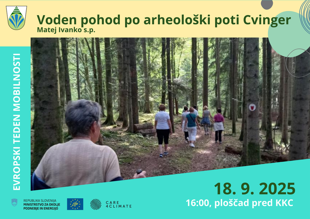 V okviru Evropskega tedna mobilnosti vas v četrtek, 18. septembra 2025, vabimo na voden pohod po arheološki poti Cvinger, ki ga bo vodil Matej Ivanko.