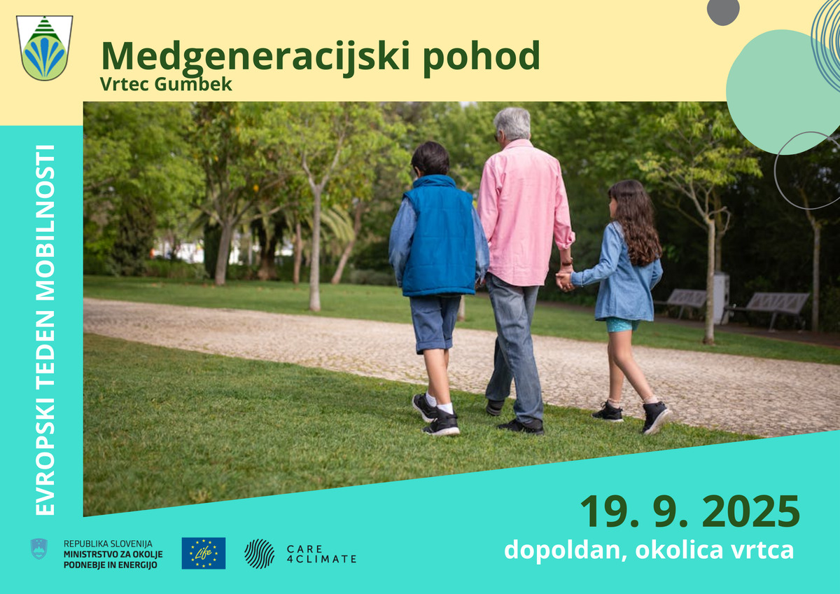 V petek, 19. septembra 2025, bo v okviru Evropskega tedna mobilnosti potekal poseben medgeneracijski pohod, ki ga organizira Vrtec Gumbek.