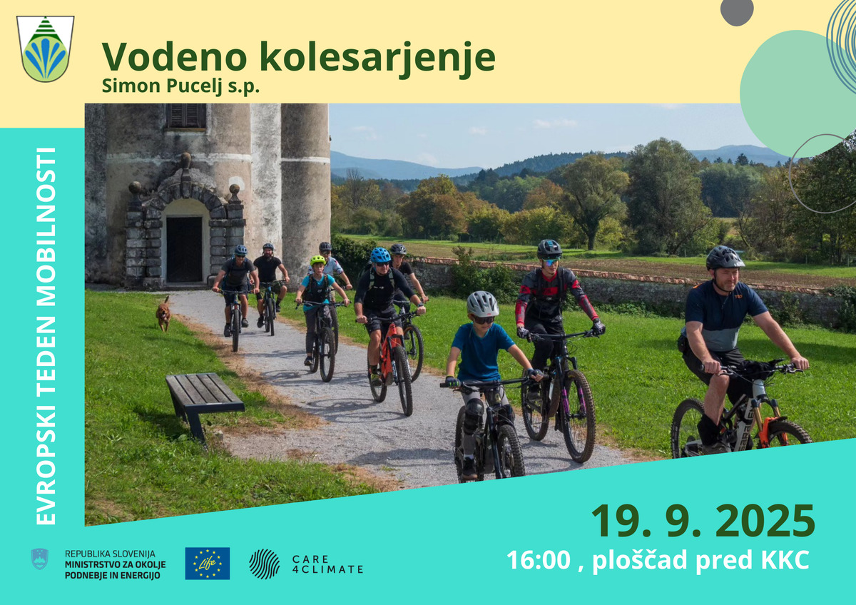 V okviru Evropskega tedna mobilnosti vas vabimo, da se nam pridružite na vodenem kolesarskem izletu, ki bo potekal v petek, 19. septembra 2025, s pričetkom ob 16.00 na ploščadi pred KKC-jem.