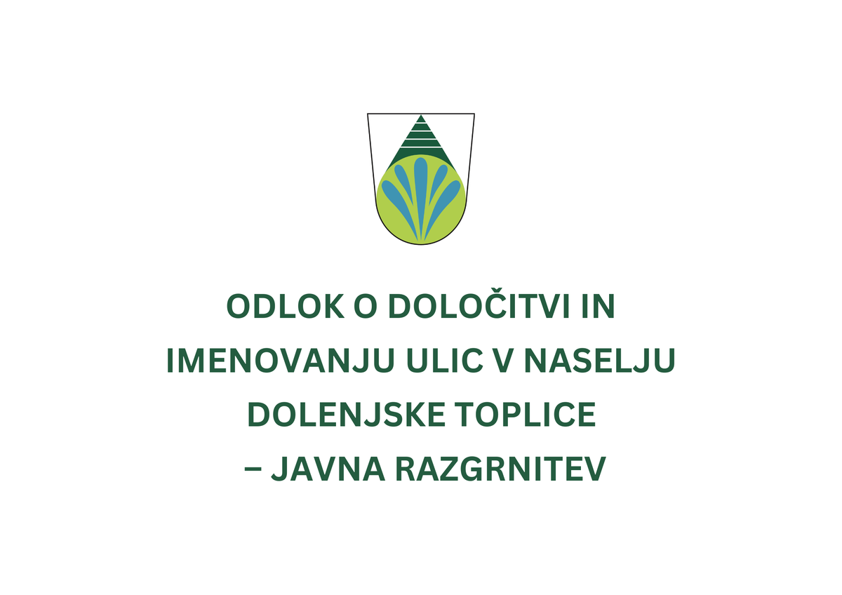 Obveščamo javnost, da bo predlog ODLOK O DOLOČITVI IN IMENOVANJU ULIC V NASELJU DOLENJSKE TOPLICE javno razgrnjen.